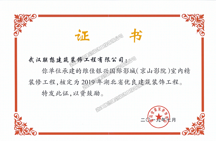2019年湖北省優(yōu)良建筑裝飾工程(維佳銀興國際影城(京山影院)室內(nèi)精裝修工程)