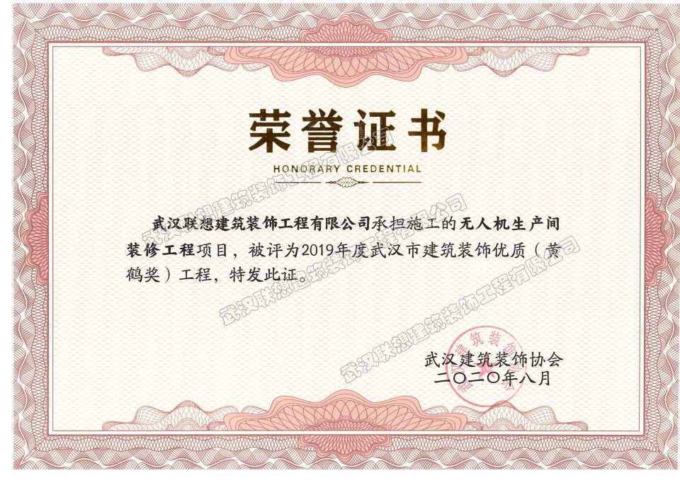 2019年度武漢市建筑裝飾優(yōu)質(zhì)工程黃鶴杯(無人機(jī)生產(chǎn)車間裝修工程)