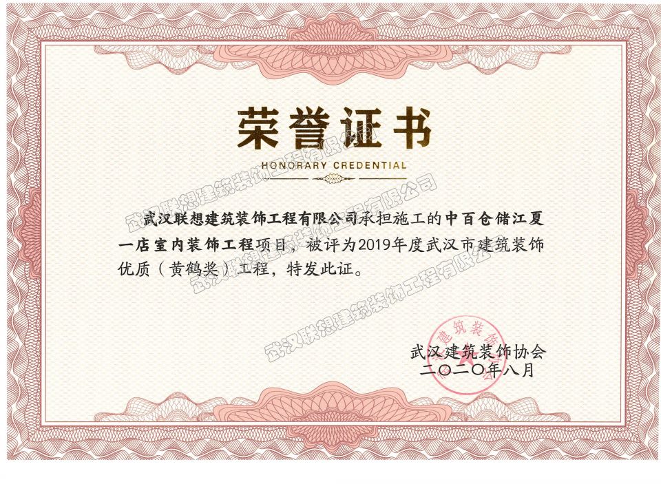 2019年度武漢市建筑裝飾優(yōu)質(zhì)工程黃鶴杯(中百倉儲(chǔ)江夏一店室內(nèi)裝飾工程)