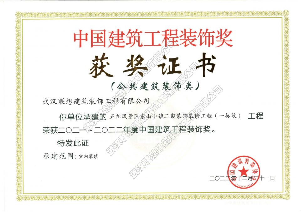 2021-2022年度中國建筑工程裝飾獎(五祖風景區(qū)東山小鎮(zhèn)二期裝飾裝修工程(一標段))