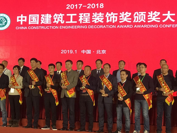 2019年1月9日,中國建筑裝飾協(xié)會在北京國家會議中心召開了2017-2018年度中國建筑工程裝飾獎(jiǎng)的頒獎(jiǎng)典禮,我司榮獲二項(xiàng)中國建筑工程裝飾獎(jiǎng)(國優(yōu)獎(jiǎng)),分別是光谷科技會展中心項(xiàng)目精裝修(一標(biāo)段)施工工程和湖北同惠商業(yè)商場精裝修工程。此獎(jiǎng)項(xiàng)是建設(shè)部批準(zhǔn)設(shè)立的中國建筑裝飾行業(yè)的最高榮譽(yù)獎(jiǎng),公司再次獲此殊榮,可喜可賀!榮譽(yù)的獲得,是公司全體員工共同努力的結(jié)果,也必將激勵(lì)著大家在新的年度,再接再厲,再創(chuàng)佳績!