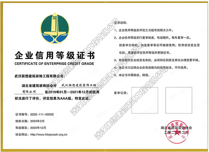 湖北省建筑裝飾協(xié)會(huì)3A信用評(píng)價(jià)
