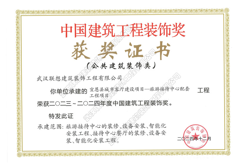 2023-2024年度中國(guó)建筑裝飾工程裝飾獎(jiǎng)(宣恩縣城市客廳建設(shè)項(xiàng)目-旅游接待中心配套工程項(xiàng)目)