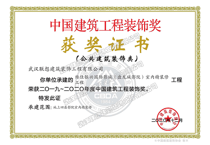 2019-2020年度中國建筑裝飾獎(維佳銀興國際影城(盤龍城影院)室內(nèi)精裝修)