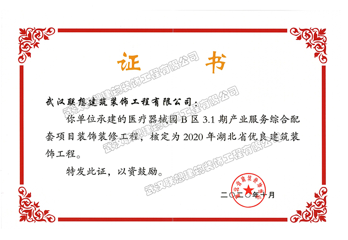 2020年湖北省優(yōu)良建筑裝飾工程(醫(yī)療器械園B區(qū)3.1期產(chǎn)業(yè)服務(wù)綜合配套項目裝飾工程)